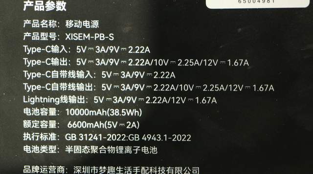西圣PB-S充电宝是通过3C专业认证的,机身侧面有清晰的3C认证标识,不用托运,我能轻松带上飞机,这点已经帮大家验证过了。