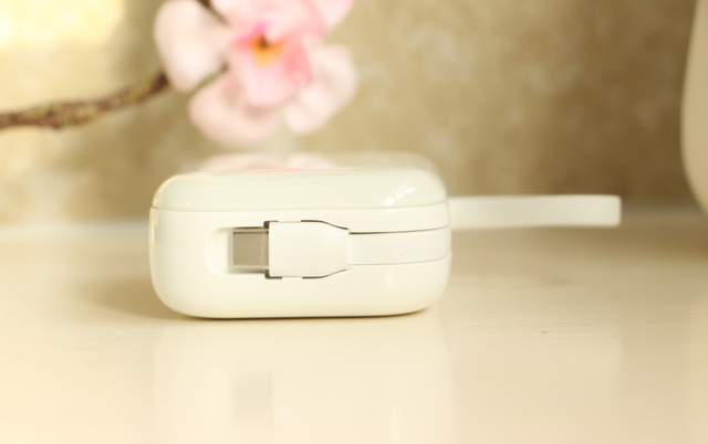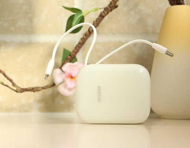 这款充电宝可以将充电线收纳起来,当成简易手绳拎着,好看又实用。