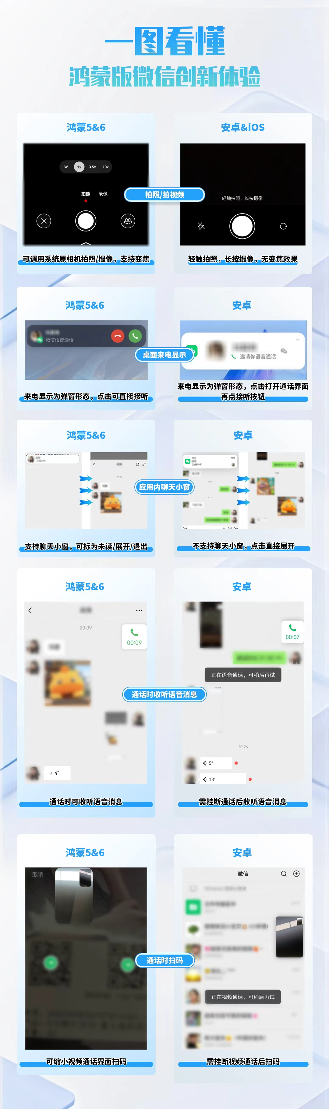 除了这个功能,鸿蒙版微信的日常体验也越来越顺手,许多“彩蛋”功能都深度融合了鸿蒙优势,大家可以了解一下:语音来电是弹窗形态,打游戏时接电话再也不会被强制全屏打断;聊天支持应用内小窗,唠完这份唠那份,一点也不耽误;在微信里拍照还能直接调用系统原相机,拍出来觉得整个世界都清晰了。