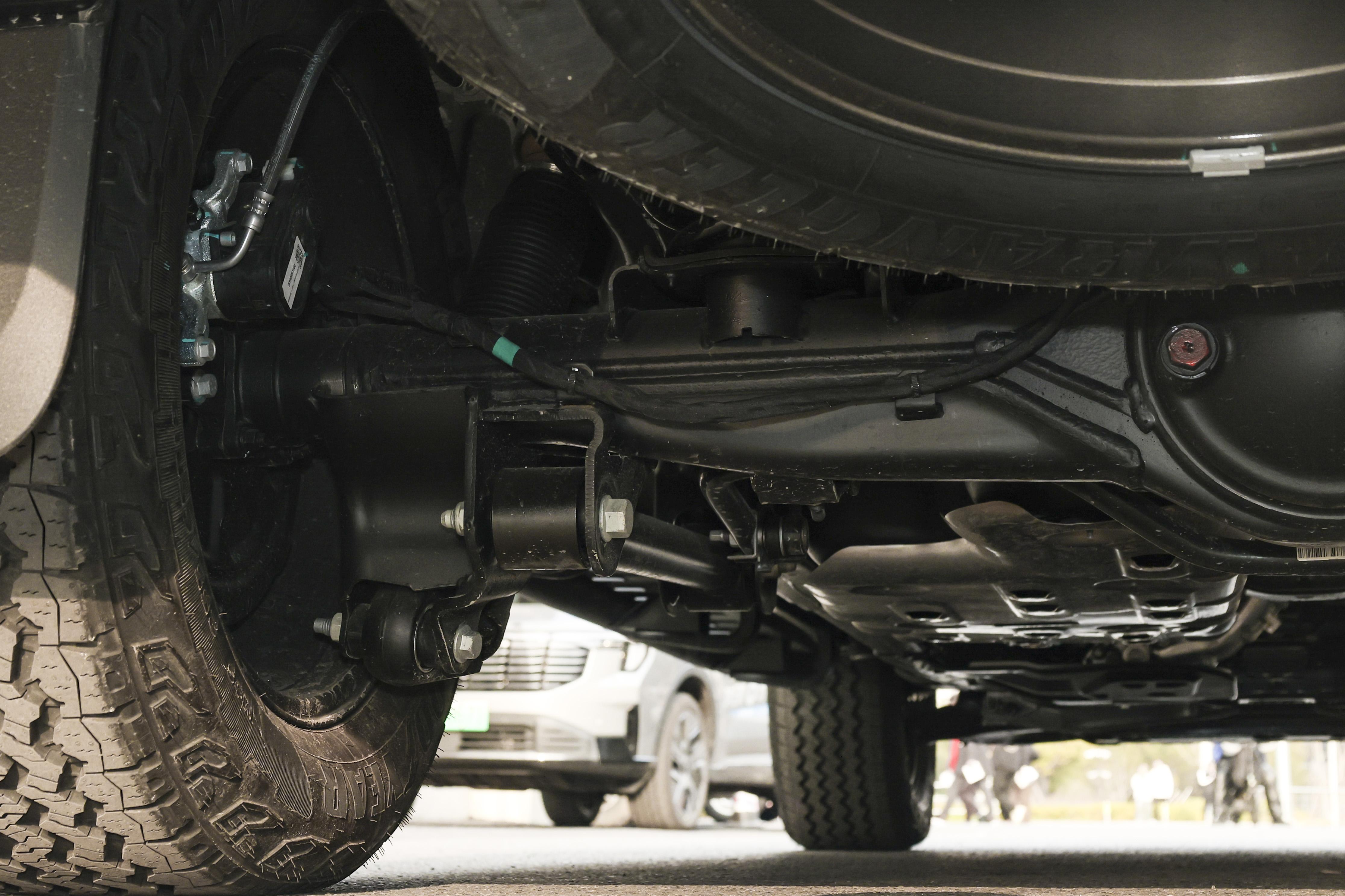 底盘与操控方面,这款游骑侠Ranger沙狐版用的是非承载式车身,前双叉臂式独立悬挂与后整体桥式非独立悬挂,是硬派皮卡中比较主流的悬挂组合,前后差速锁、低速四驱也配齐了,离地间隙238mm,烂路通过能力扎实。540度透明底盘、涉水感应、越野蠕行、坦克掉头这些功能一应俱全,跑非铺装路面更省心。我特意开到无锡郊外的荒地、碎石路去试,切换到越野模式,车子立马变得更有底气。过大坑大坎时,悬挂滤震舒服,像魔毯一样把颠簸都化解掉,坐车里也稳当。爬小坡也轻松,大扭矩一发力就上去,遇到车轮打滑,后桥差速锁一锁就能稳稳脱困。再加上FOX减震,跑烂路、冲小沙丘都挺稳,车轮贴地性好,抓地力强,下坡开蠕行模式,我只管握好方向就行,就算平时不太玩越野的,也可以开得有模有样。