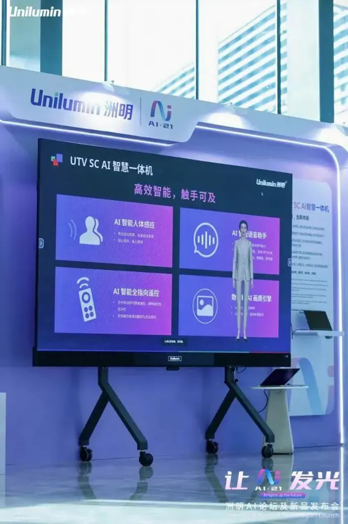 洲明科技AI创新产品正在全面开花,包括全新AI智慧一体机、超级一线通(五合一)方案以及户外智慧LED等系列新品。其中,AI智慧一体机UTV SC,搭载了AI智能人体感应、AI智能语音助手、AI智能全指向遥控、勃朗峰AI画质引擎等丰富AI功能,可适应各种不同的应用场景。