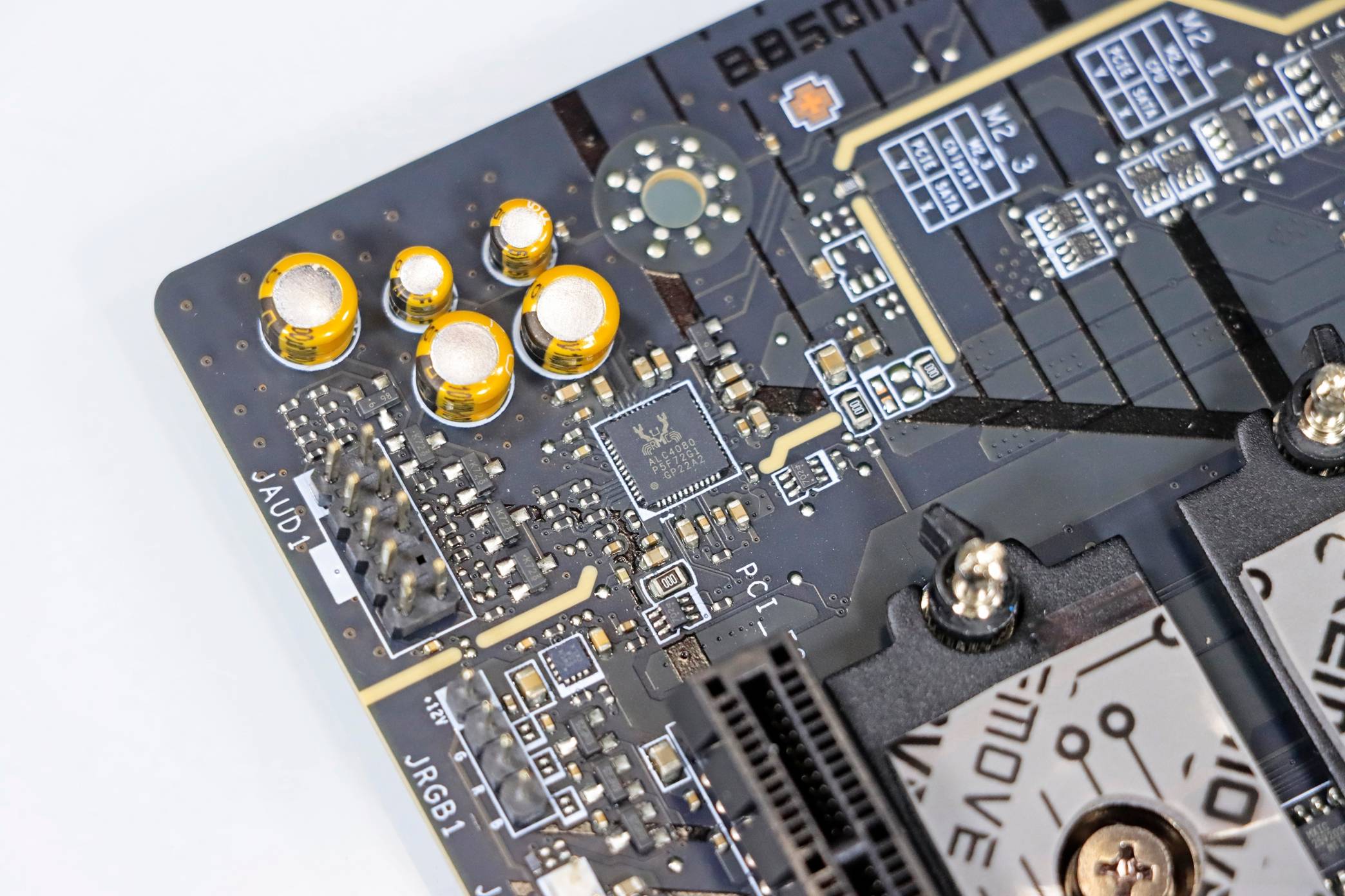 ▲ 主板搭载有来自小螃蟹 Realtek 的 ALC4080 板载声卡,并配备有出色的滤波电容并设有信号屏蔽线,可以为用户输出 7.1 声道纯净音频。