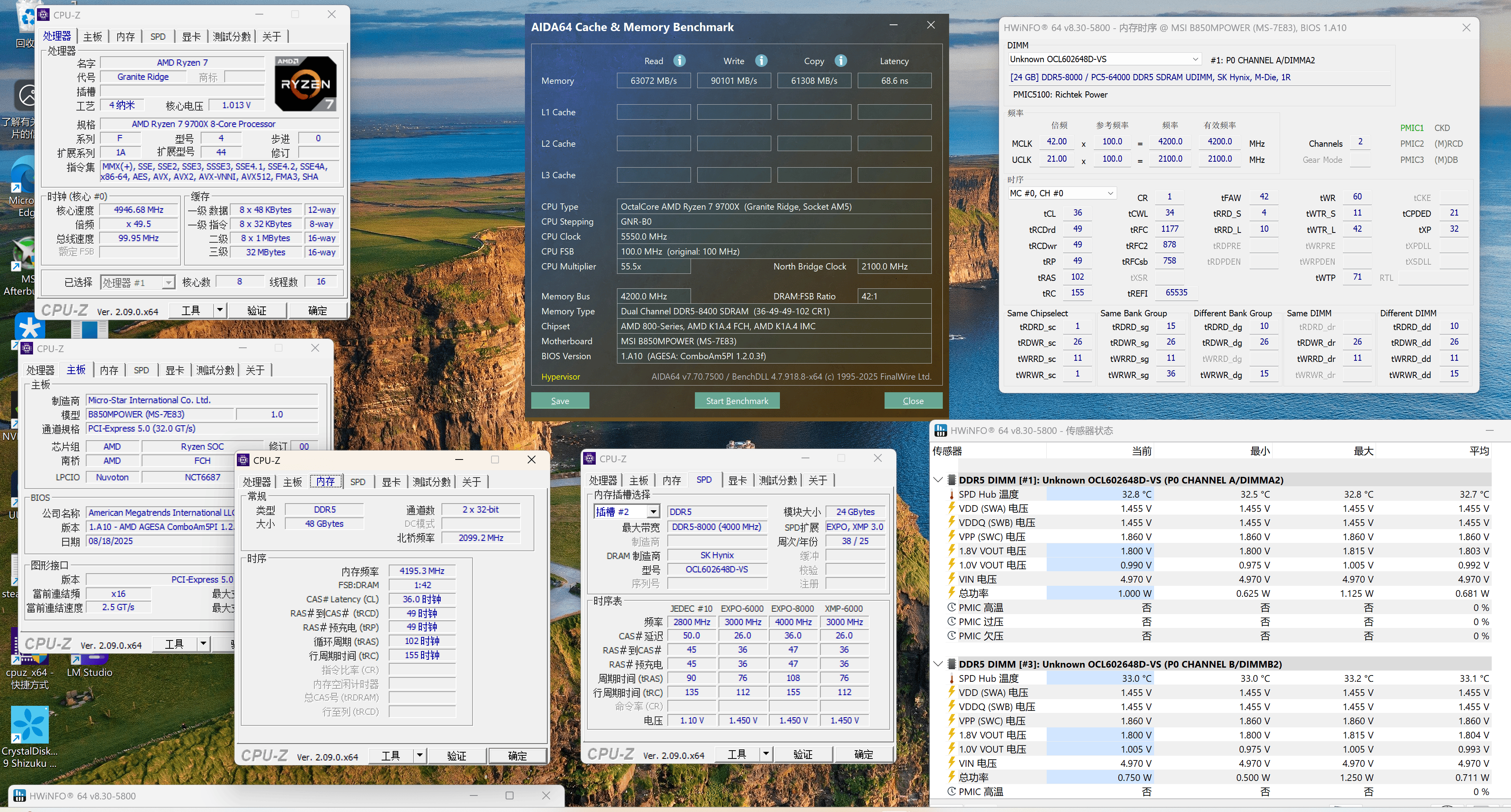 ▲ 下一个,换 9700X + B850MPOWER + Origin Code VORTEX DDR5 6000 & 8000 双 EXPO 24G*2 组合进行测试。