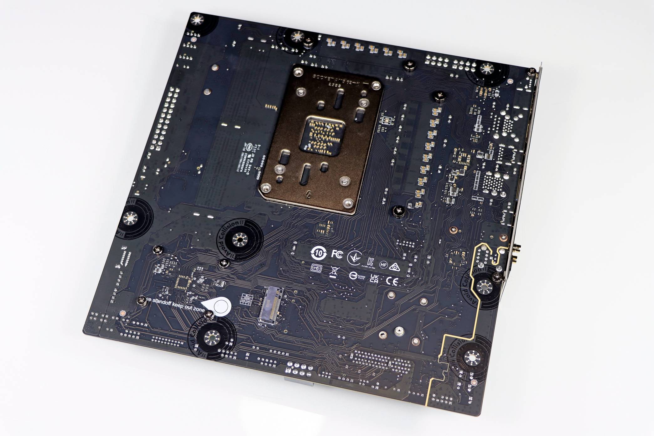 ▲ 主板的背面可以看到焊点清晰,钽电容等电子元器件排列美观。背后还有个 M.2 PCIe 4.0 X4 SSD 的接口作为扩展。