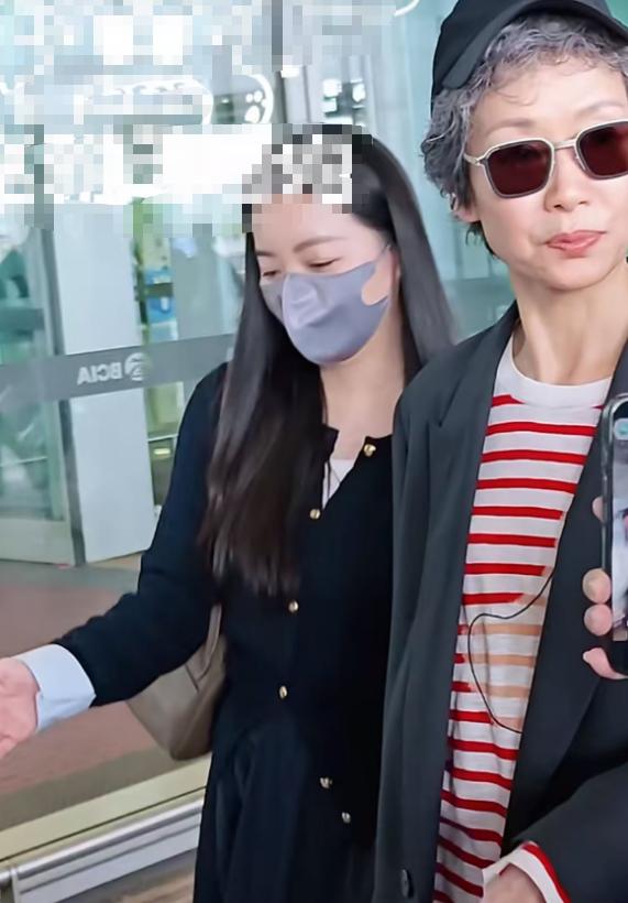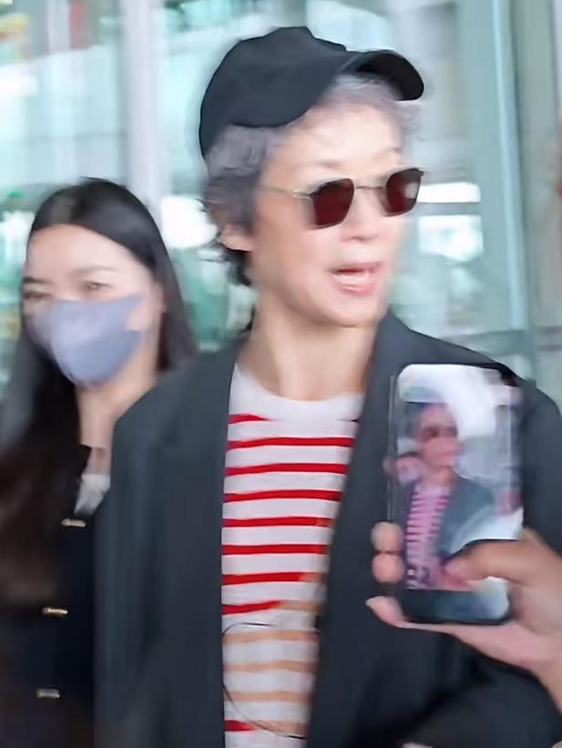 4月24,有网友偶遇到了叶童,在首都机场赶飞机,画面中她穿了一件黑色的西装外套,里面是红白格纹的衬衫打底,