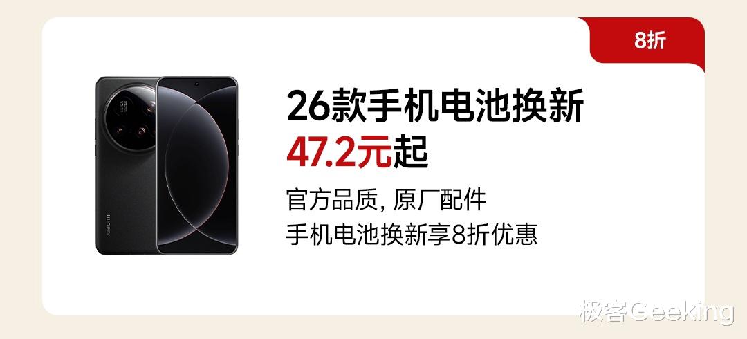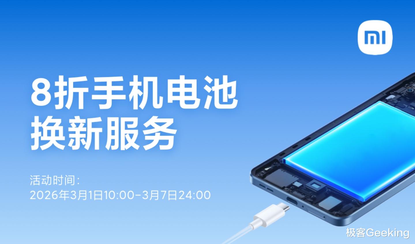 小米新一轮的售后服务折扣活动来了,官方称之为「3 月服务周」,这也是 2026 年后首次的服务活动。服务项目包括 8 折手机电池换新和笔记本电脑 5 折深度清洁保养,以及大家电的清洁保养和空调清洁套装服务,活动期限是 3 月 1 日到 7 日,同样是为期一周,有相关需要的读者可以特别留意一下。