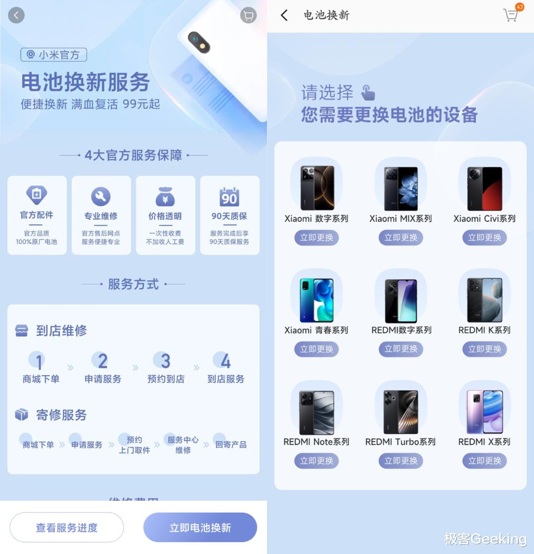 最后总结来说,小米的「3 月服务周」活动对比以往,服务项目依然缺席了 8 折平板电池换新和手机后盖 8 折换新,8折 换电池的覆盖机型有所减少,不过价格更便宜了,由 79.2 元变为了 47.2 元。那么现在这次有你准备要换电池的手机设备吗?
