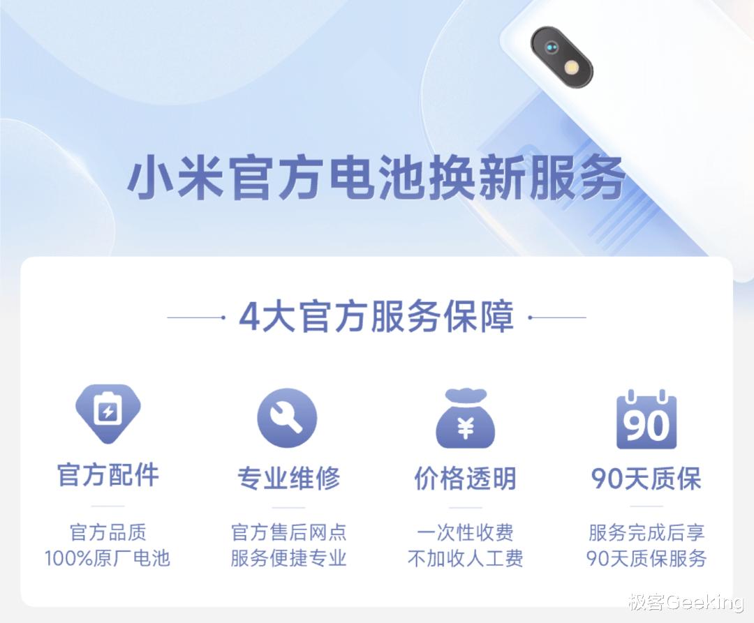 手机电池在充放电使用中出现衰减、健康度变差是正常现象,如果发现自己的手机续航时间明显变短,或者电池健康度较差,可以通过这一 8 折活动换上一块全新的电池,让手机的续航满血复活,焕发新生。小米售后更换的新电池是原厂配件,而且换新的电池支持官方 90 天质保。