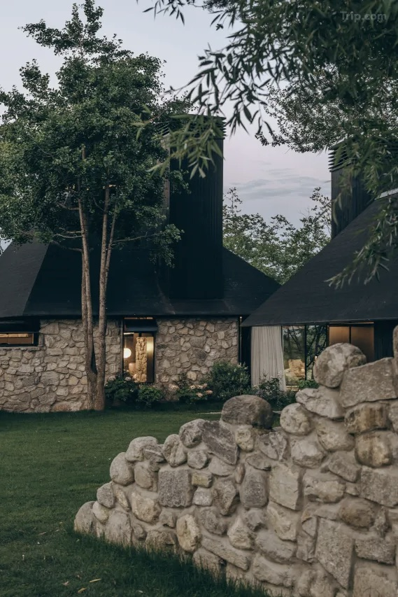 野奢石砌建筑与无限流动空间,建筑室内景观高度融合。室内热带雨林植物造景与户外自然环境形成呼应,实现了建筑与自然的极致共生,原创性极强。