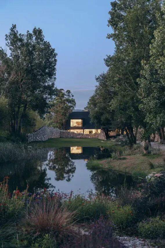 以乡土建构语言转译在地文化,自然材料构建疗愈性空间叙事,形态与场景高度融洽。