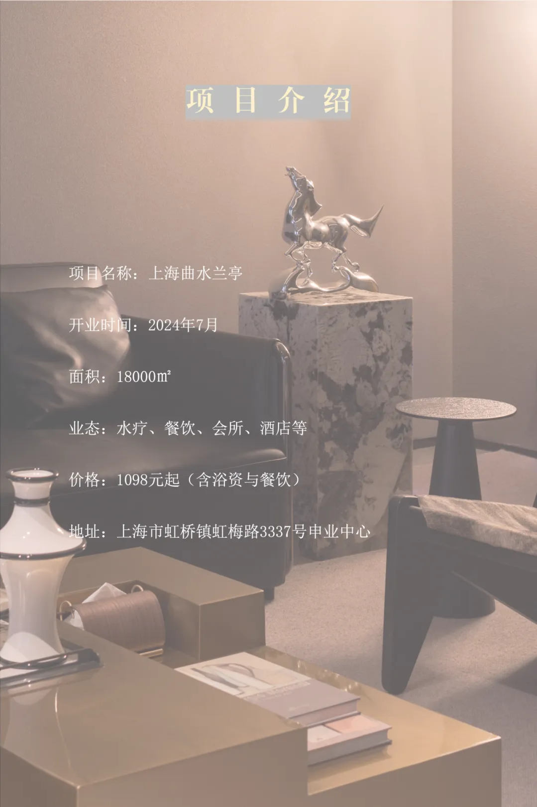 上海曲水兰亭定位为高端美学度假酒店,致力于为精英人群构建集康养休闲、社交会友与商务办公于一体的健康美学生活空间。