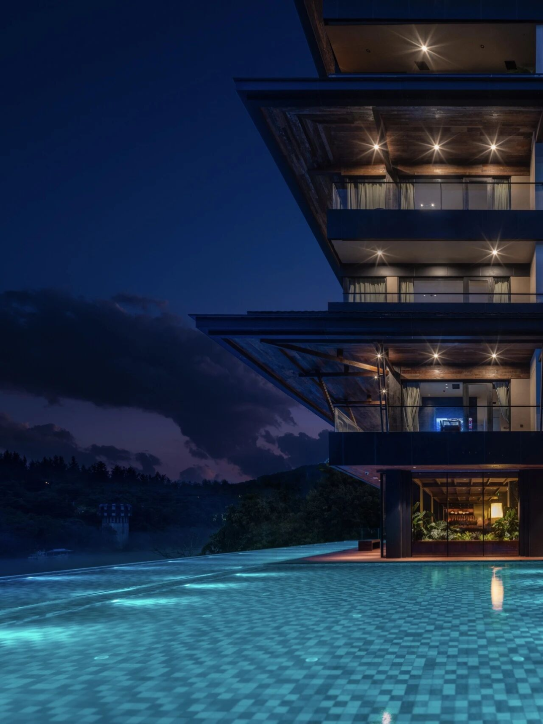 其设计理念强调沉浸式空间体验,将东方古典气韵与现代建筑、光影设计相结合,打造自然与奢华融合的环境。