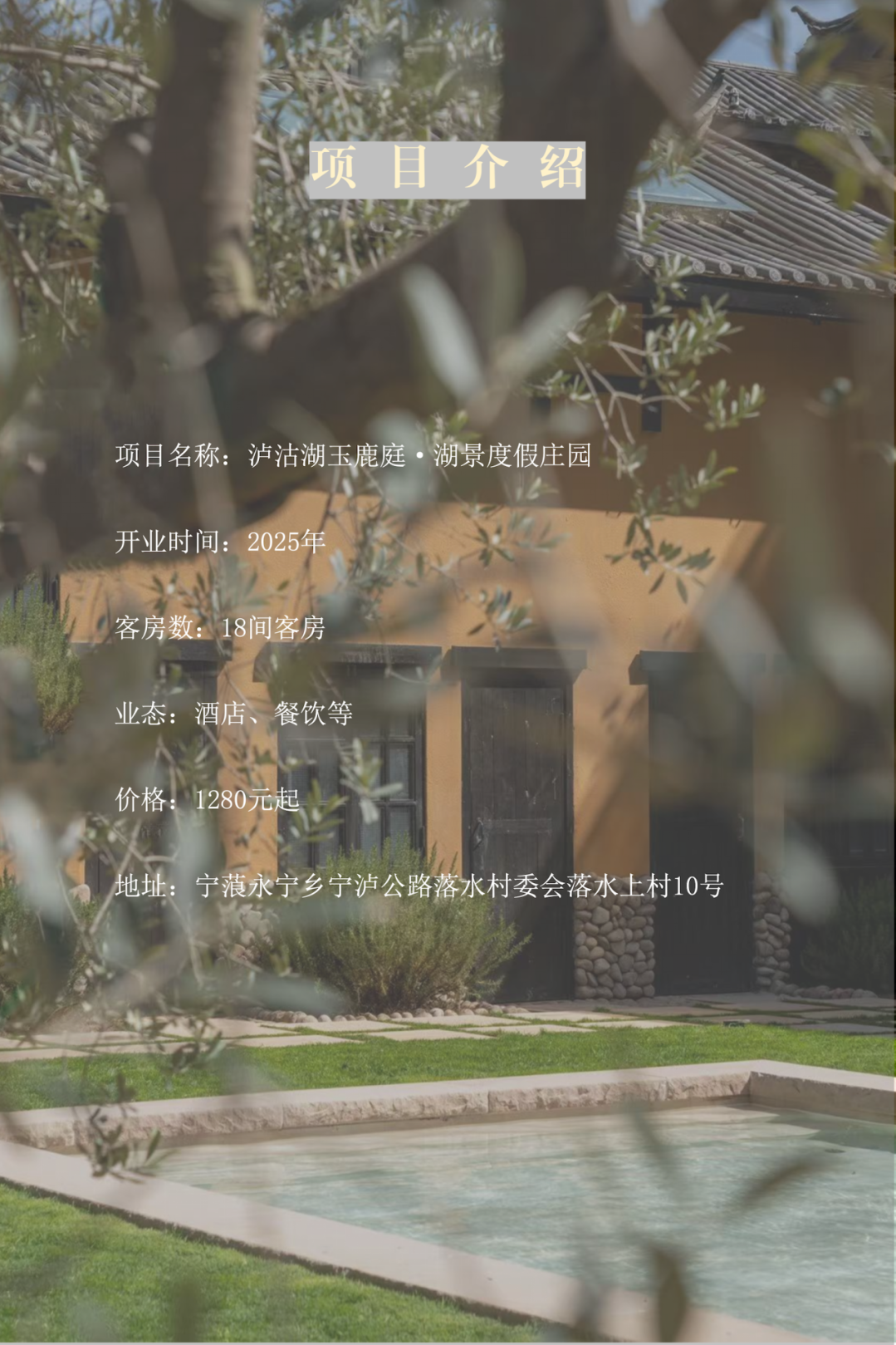 泸沽湖玉鹿庭·湖景度假庄园坐落于大落水村,直面泸沽湖与格姆女神山风光。酒店建筑以白墙拱窗为特色,庭院遍植花卉,融南欧设计与湖畔自然意境为一体。