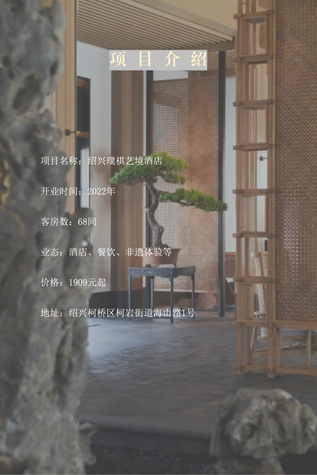 管家服务可为客人安排水疗或本地餐饮预订。璞祺艺境邻近绍兴多处人文古迹,方便客人探索当地历史与文化。