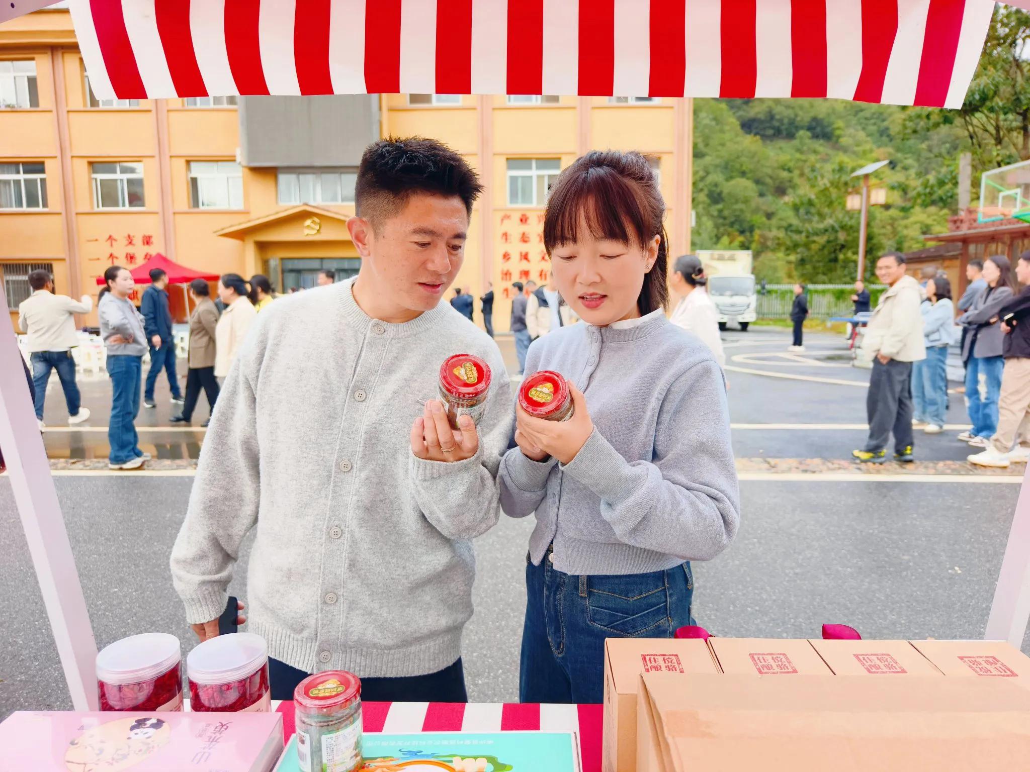 此外,特色农产品展销区同步开放,成为展示当地优质物产的重要窗口。高山有机大米、秦岭蜂蜜、生态香菇等特色农产品整齐陈列,吸引游客驻足挑选、咨询采购。据了解,展销区不仅为村民搭建了农产品销售平台,也让游客得以将“秦岭风味”带回家,进一步打通了“农特产品”到“旅游商品”的转化通道。