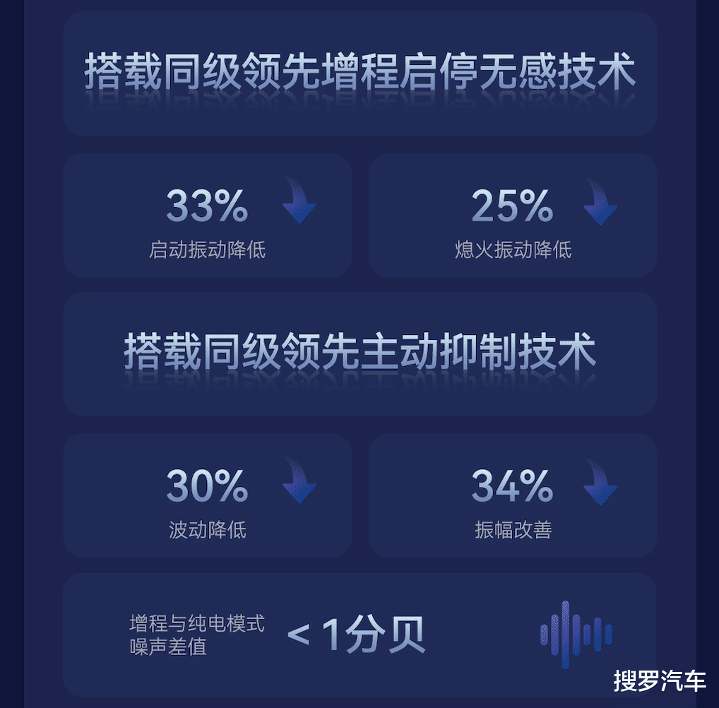 此外,新车还搭载同级领先增程启停无感技术,新技术通过将启动振动降低33%,熄火振动降低25%,增程器启停波动降低30%,振幅优化34%,增程与纯电模式噪声差值<1分贝,有效改善了传统增程车型的驾乘体验。这一技术创新,代表着行业对增程车型品质提升的持续探索,也为细分市场的发展方向提供了新的启示。