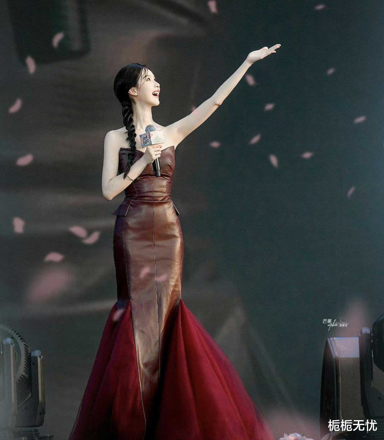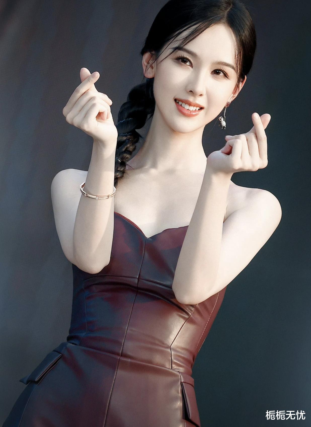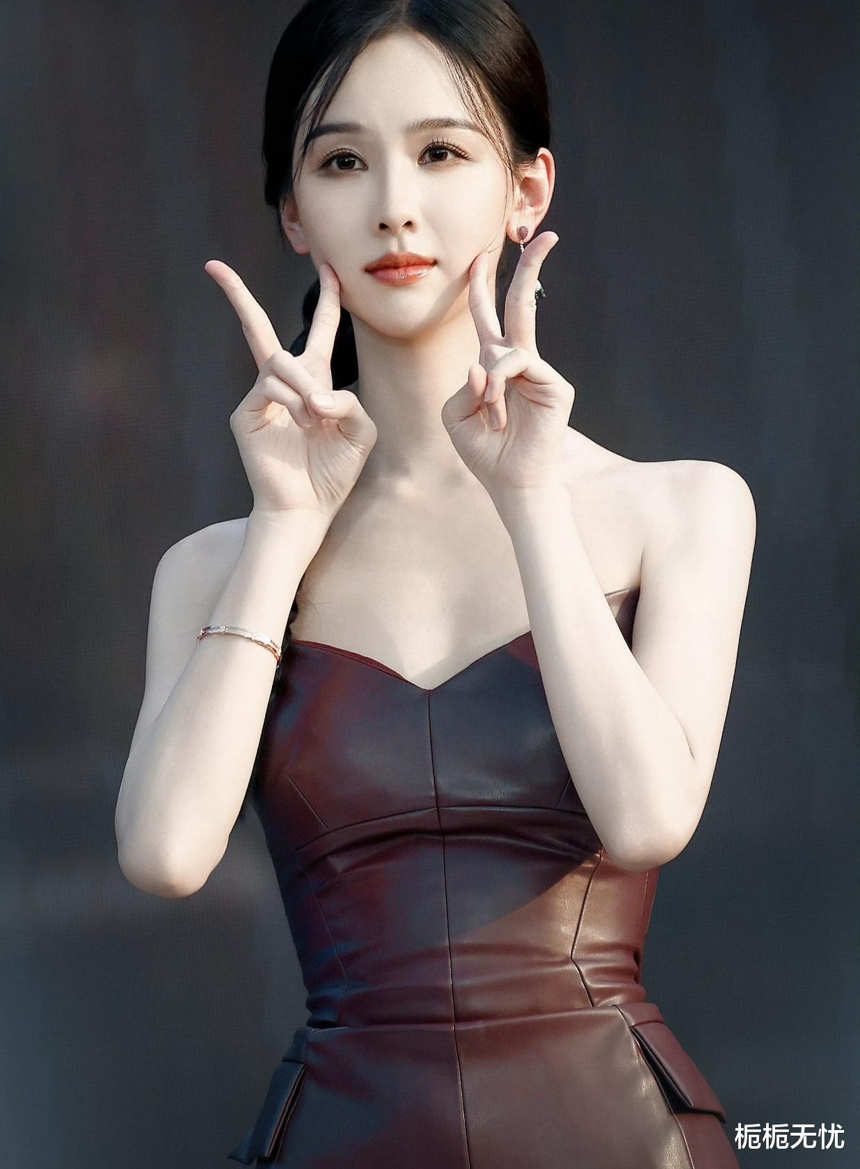 说回这身造型,真的是又飒又欲,完美诠释了“高温美学”的精髓。酒红色皮裙的光泽感十足,在灯光下闪闪发光,仿佛能将人的眼睛都给晃瞎。那抹胸的设计更是巧妙,恰到好处地展现出陈都灵的优雅气质,又增添了几分性感韵味。再配上她那高挑的身材和自信的气质,简直就是行走的荷尔蒙炸弹,让人看了就忍不住直呼“辣晕了”。