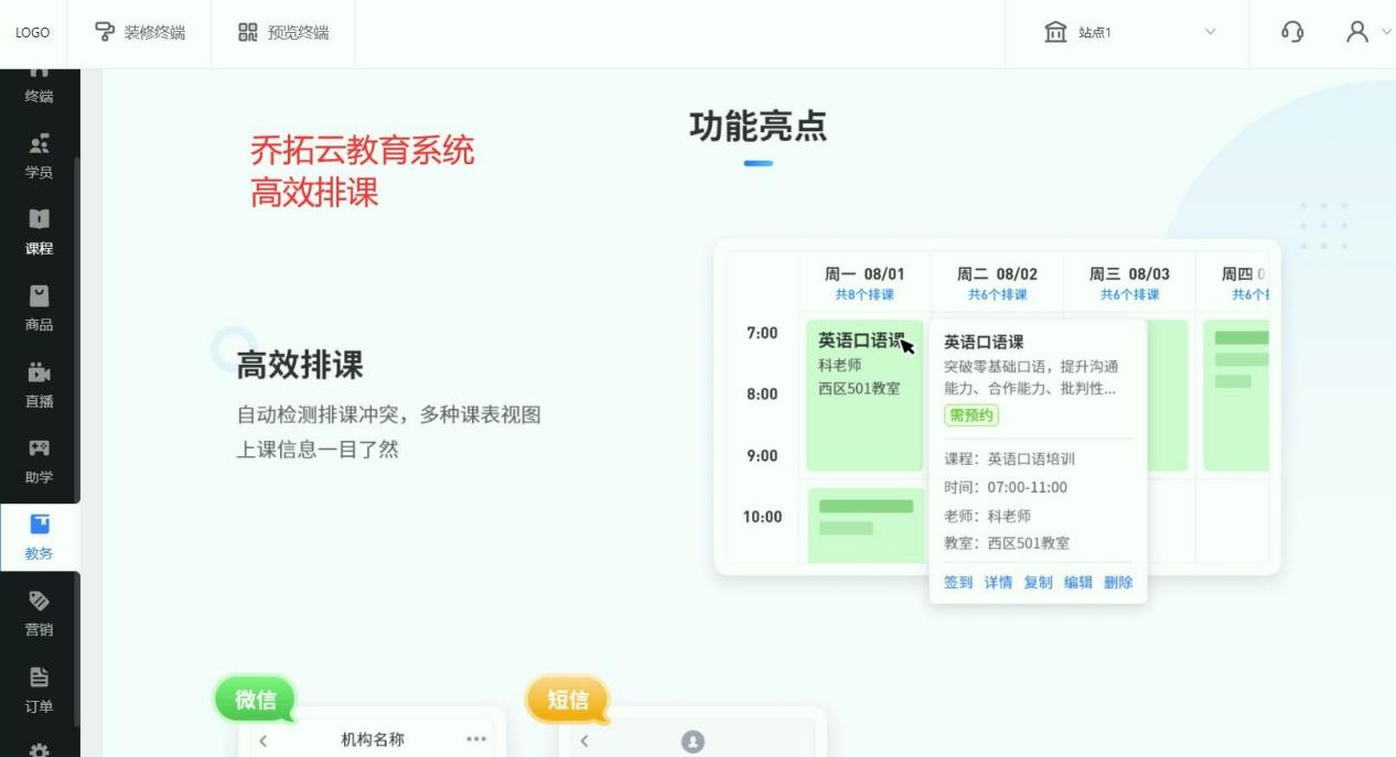 排课管理:排课功能完善,支持多班型、多校区排课,可设置教师专长标签,自动匹配教师与课程,提升排课效率40%以上。