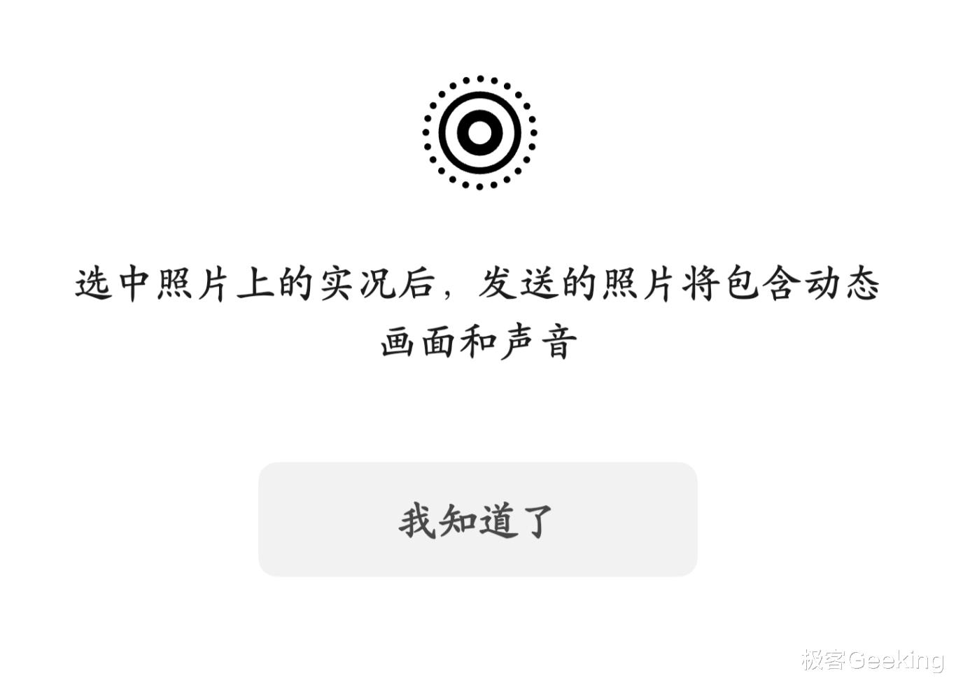 如果查看好友分享过来的实况照片,点击打开图片会看到左下角位置会有一个“实况”的图标按钮,只需要点击就能看到包含动态效果,同样也能听到声音。