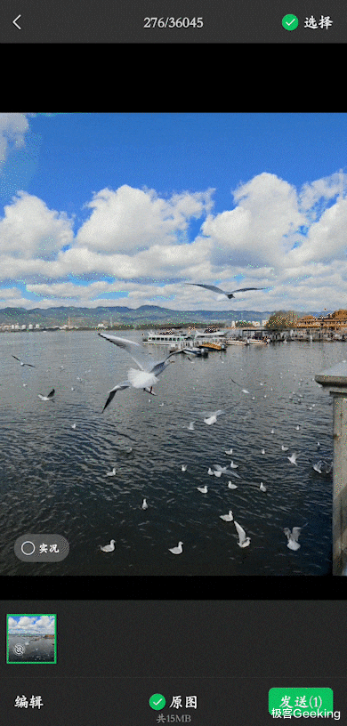 勾选图片默认是静态模式,选中实况后,发送的照片就能支持动态效果。