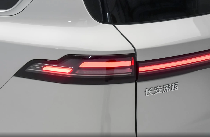 至于车尾部分,深蓝S09同样是采用贯穿式的尾灯组,并且深蓝的品牌Logo也与尾灯组相融合,点亮之后也能够提升整车的科技氛围和辨识度。而在尾灯组两侧,也许深蓝S09最初的想法是将三瓣式的家族式灯组进行简化,但横向布置又与零跑汽车的家族式设计语言产生联系,这是我个人觉得比较尴尬的点。