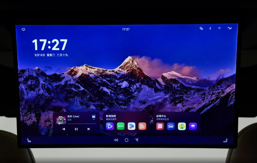 另外,深蓝S09采用三排六座的布局方式,而且它的第二排还是两张零重力座椅,如果没记错的话,似乎只有昊铂HL才有这样的座椅配置,总之双零重力座椅在SUV市场不多见,但今后也会成为互相内卷的新配置。除此之外,深蓝S09的二排还提供了支持角度调节的3K吸顶屏,同时前后灵活移动的中岛也是全系标配的一项功能。至于第三排的空间表现,个人认为与市面上尺寸相近的六座车大同小异,属于刚好够用的水平。
