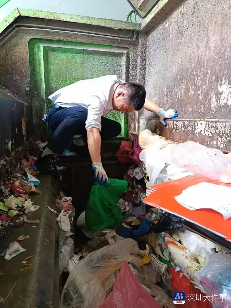 2月15日,深圳鸿荣源壹成中心一业主孩子误将装有10万元现金的包裹扔进小区垃圾分类点。这笔钱随后被清运至中转站,混入13吨压缩垃圾中,情况紧急。