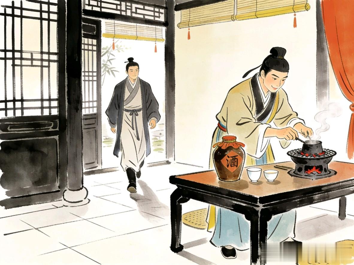 次日申时,听雨轩内只设一桌。杨戬亲自烫酒,见柳文渊进来,笑道:“文渊来得正好,这坛‘梨花白’埋了十年,今日与你共品。”