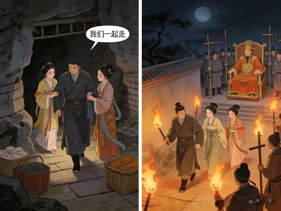 “我们一起走!”瑶月抓着他衣袖,“车马已备在西角门。”