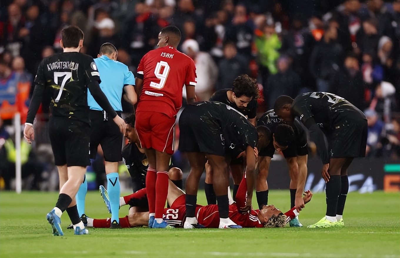 比赛一开始,利物浦排出双前锋体系,伊萨克与埃基蒂克搭档冲锋。然而,这一设想很快被打破——埃基蒂克在上半场就因伤被担架抬离场,利物浦的进攻体系瞬间崩塌。