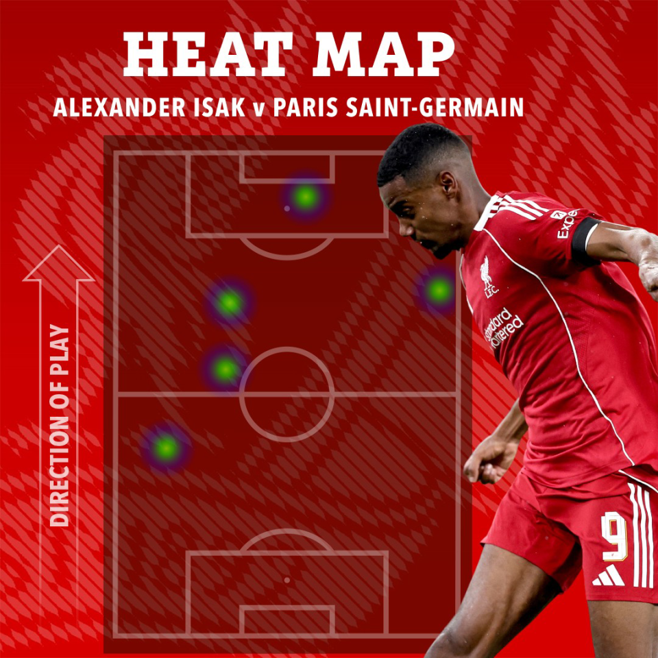 果然,中场休息时他被加克波换下。相比之下,加克波的表现明显更具活力——触球次数比伊萨克多出20次,还完成了19次传球,让利物浦的进攻明显有所起色。