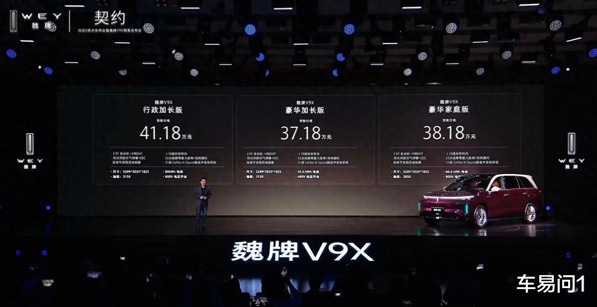 诞生于归元S平台的魏牌V9X,于当晚正式开启预售。新车定位大型豪华插混SUV,共有3款配置车型,预售价区间37.18-41.18万元,直接杀进了理想L9、蔚来ES8、问界M9这些新势力车型的主战场。