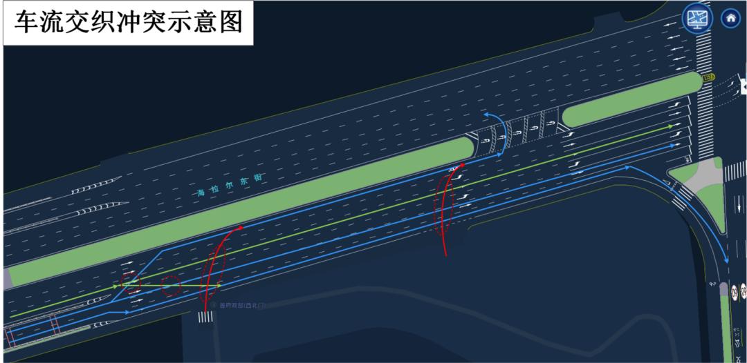 实际通行过程中,问题表现得更加突出。从金海高架西向东行驶时出口数量较少且间距较大,直接造成昭乌达路下桥口长期堵车,在高峰时间车队可以一直延伸到公主府附近。右转车辆经常受到东向南左转和北向南上桥车辆的影响,车道交织严重,通行不畅。还有南二环快速路由西往北进入巴彦淖尔快速路的路线被堵塞住了,并且很多车主到了这里容易走错路,给日常生活带来不便。