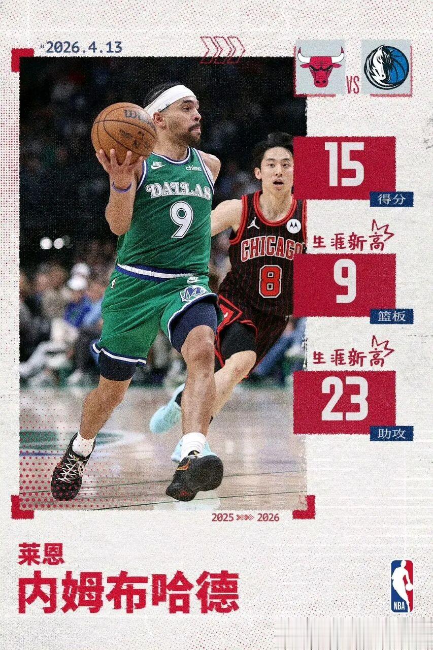 在本场比赛中,独行侠落选秀瑞安-内姆布哈德出战38分钟,狂砍15分9篮板23助攻2抢断的大号准三双。