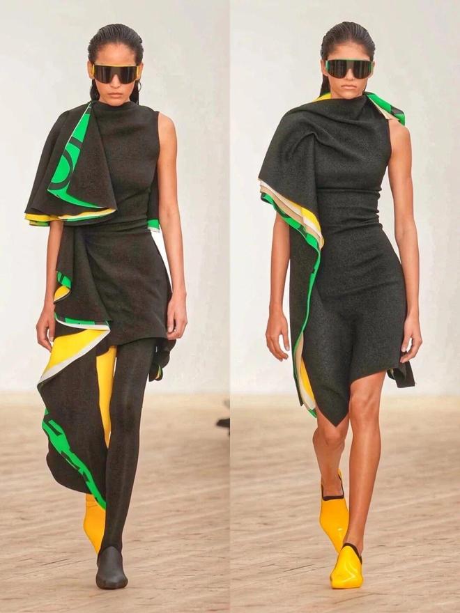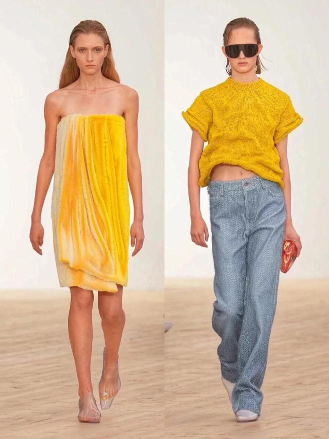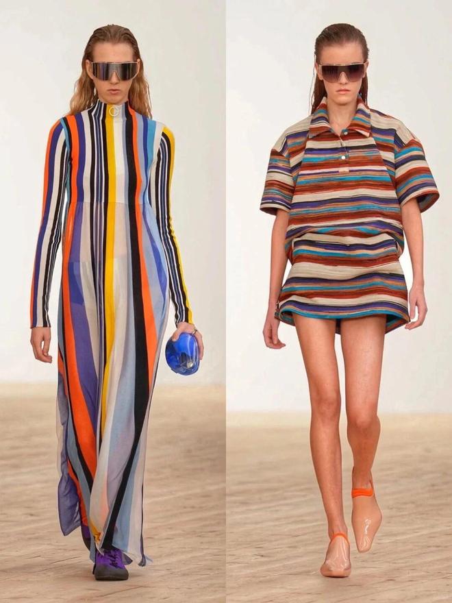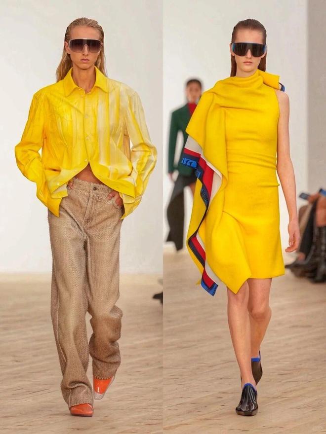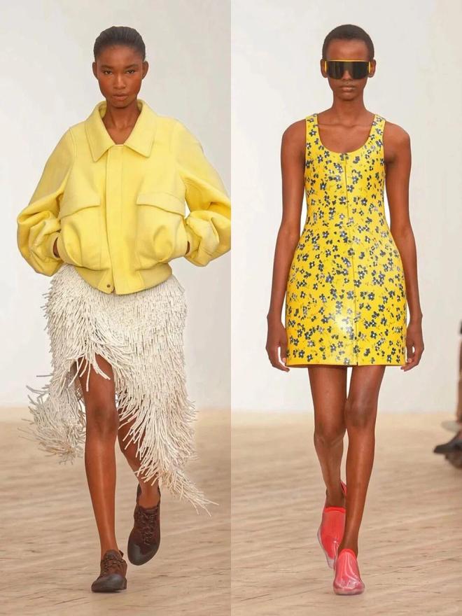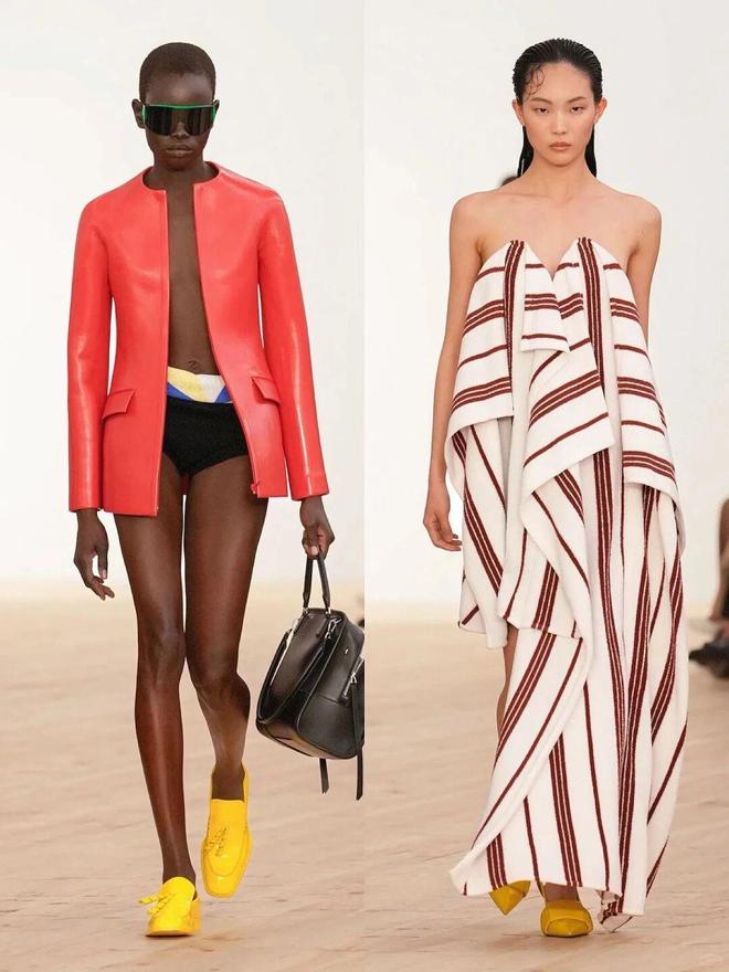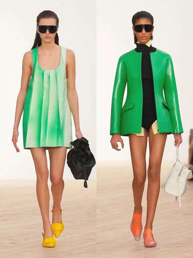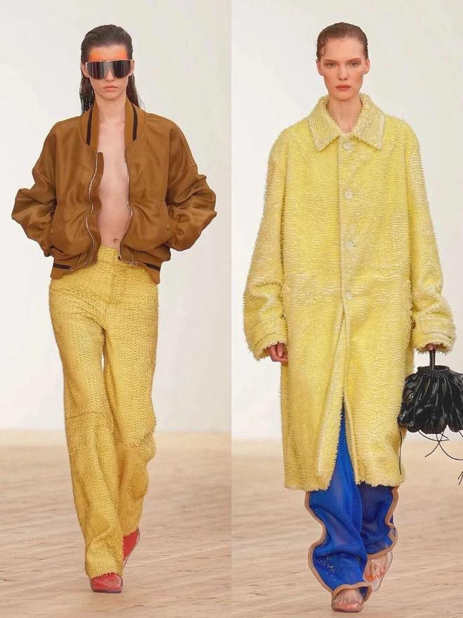 秀场的彩色穿搭之所以高级,关键在于“乱色不乱形”——用简约的直线条单品,包容花哨的配色。本季出现了超多直筒大衣、H型夹克,这种中性线条不挑身材,还能中和彩色的跳跃感。