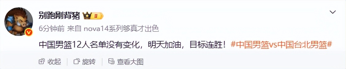 世预赛中国男篮与台北队的比赛将于明天下午四点开打。而中国队今天下午也公布了12人名单。这份大名单与上一场的名单一样原封不动,也就是说上场的12人名单就是明天对阵台北的12名球员。