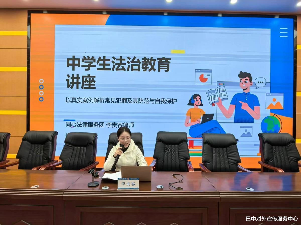 此次行动由南江县委统战部副部长杨军、南江县司法局党组成员梁娟、巴中市律师协会副会长何家永带队,首站便走进稻城县中学。活动现场,同心团李贵容律师以“青少年权益保护与违法预防”为核心,结合《刑法》《未成年人保护法》等法律法规,将校园安全、权益侵害等青少年高频遭遇的问题,转化为一个个贴近生活的真实案例。“遇到校园欺凌该怎么办?”“个人信息被泄露要如何维权?”李律师用通俗语言拆解生硬法条,让法治知识不再是纸上的文字,而是能守护自身安全的“铠甲”,引导学生树立“知法、懂法、守法、用法”的意识。