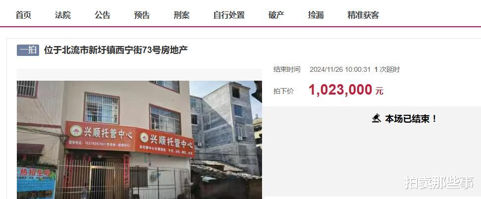 近日,在阿里拍卖上,一栋位于北流市新圩镇西宁街73号房地产迎来首次被拍卖的最后一天竞拍。此次拍卖的是一栋私人自建的天地楼,房子用地面积84.92平方米,一共三层,建筑面积有476.28平方米。从拍卖给出的图片来看,这栋天地楼还是非常新的。