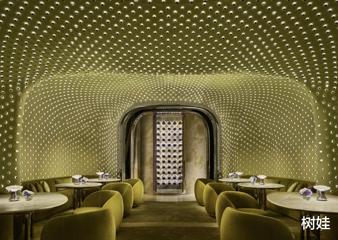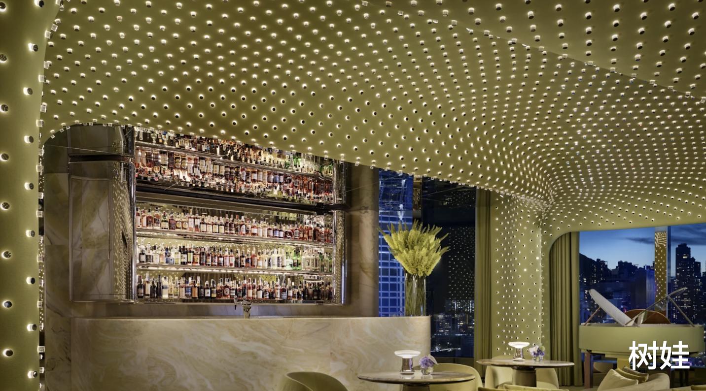 Peridot既是私人会所,也做对外营业,需要接待的时候就是私人会所,日常会对外开放。这个位于The Henderson 38楼的酒吧餐厅在2025年开业,内部装修找来的是荣获多个殊荣的多伦多空间事务所Studio Paolo Ferrari打造,里面不只是富丽堂皇,而且相当设计艺术感。整体以橄榄绿为主色调,落地玻璃,流线型大理石,抛光钢制家具,天花板以及墙体镶嵌数以万计的灯体,犹如繁星点点,相当震撼。而餐厅酒吧的主理人都不是米其林大师,就是调酒大师,总之里里外外都是以最高标准打造。