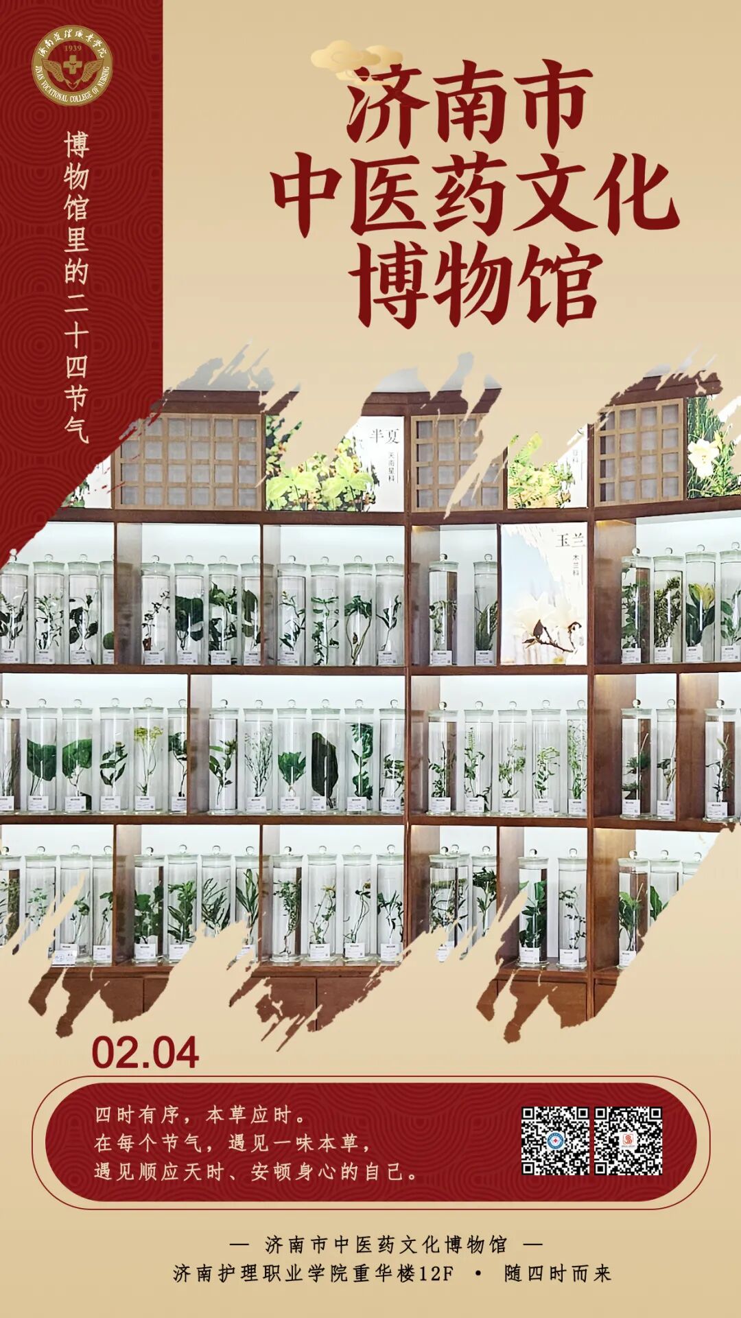 济南市中医药文化博物馆位于学院重华楼12楼,于2024年建成并开放,建筑面积2500余平方米,建立11个主题展区,馆内珍藏1300余种标本。2026年,我们以四时为序,推出“博物馆里的二十四节气”。节气不再是日历上的标签,而是一场可感、可闻、可体验的沉浸之旅。欢迎您在每个节气如期而至时,来到这里,遇见那味属于此刻的本草,也遇见一个更懂得顺应天时、安顿身心的自己。