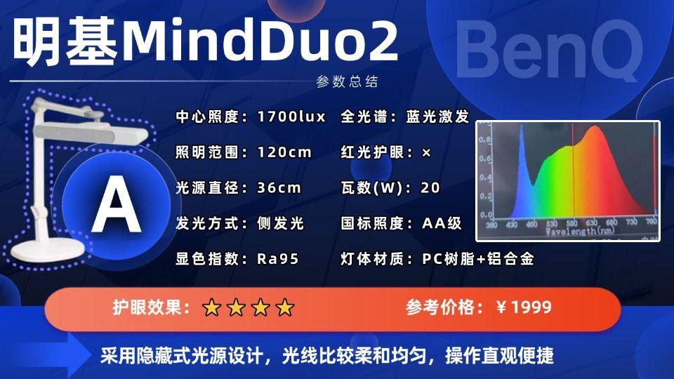 学生护眼台灯推荐第二名:明基MindDuo2(推荐指数:⭐⭐⭐⭐)