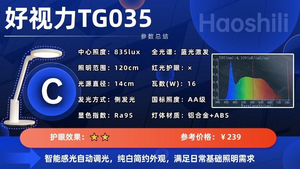学生护眼台灯推荐第七名:好视力TG035(推荐指数:⭐⭐⭐)