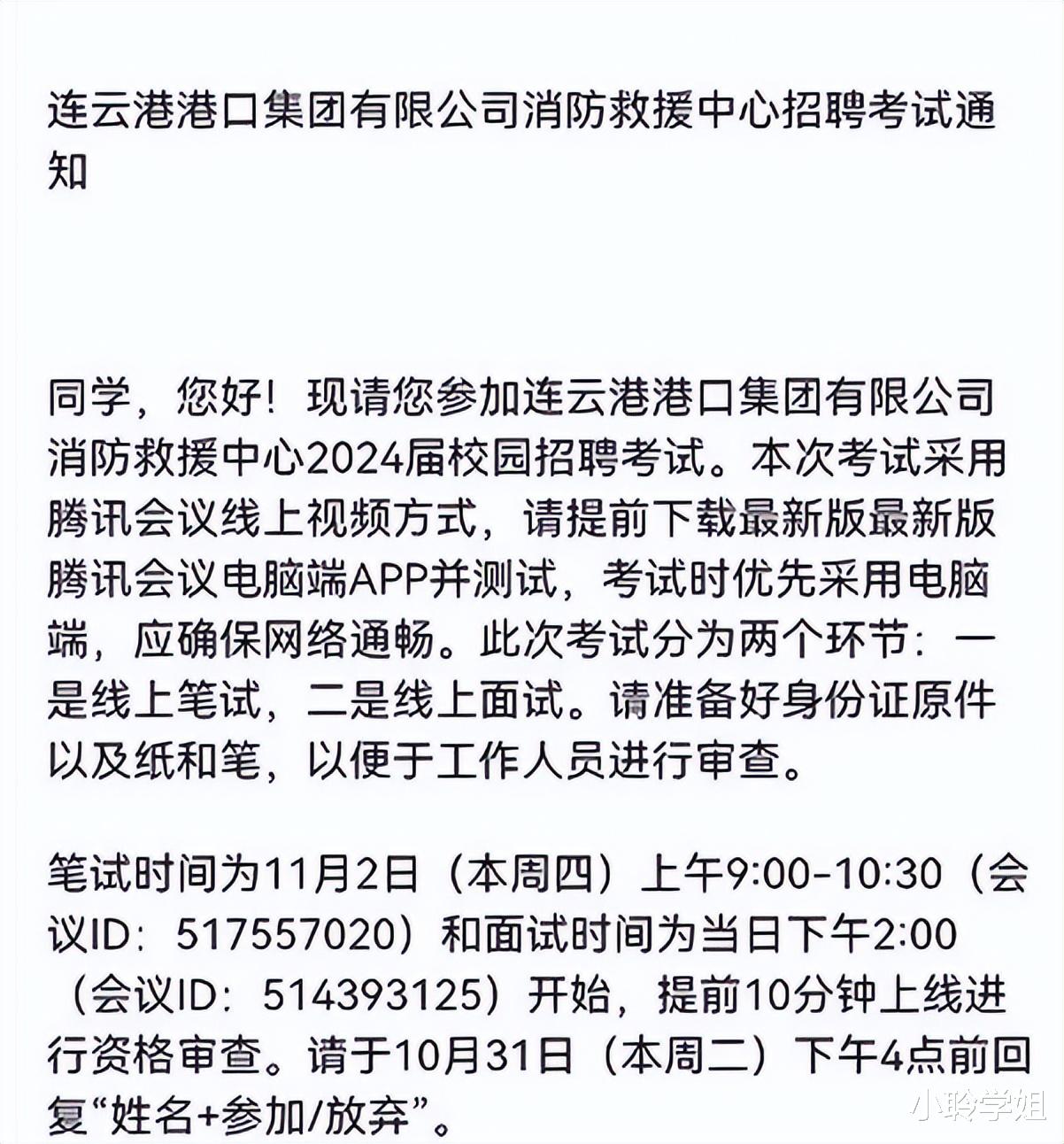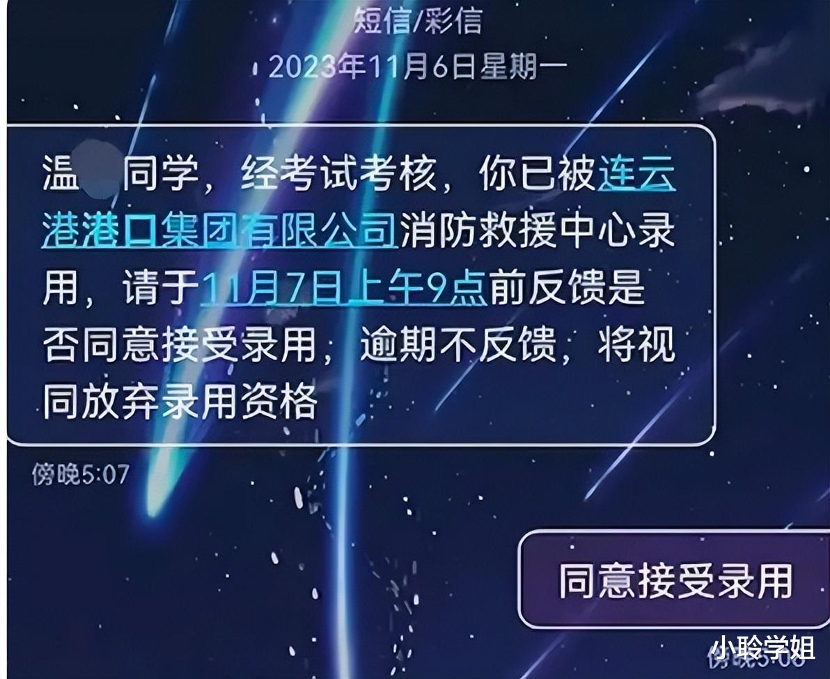 这名大学生报考的是连云港港口集团发布的2024年年度招聘,岗位是公司消防救援中心的办事员的职位,在招聘信息上面写的专业要求是汉语言文学,新闻学等等,而这名大学生的专业是网络与新媒体。