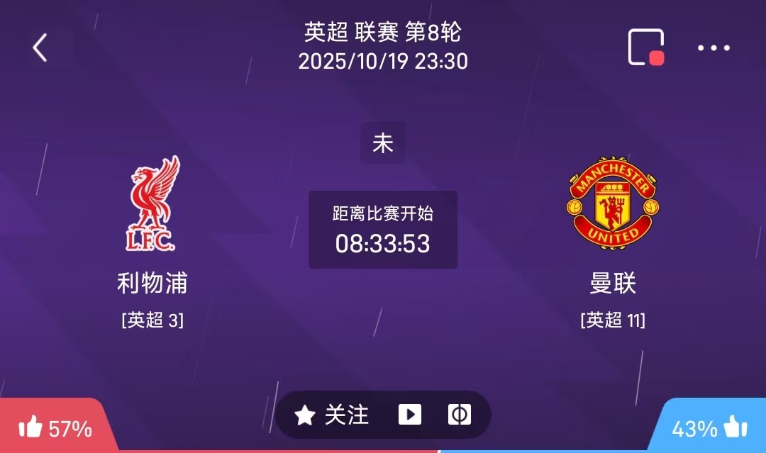 英超:利物浦vs曼联 2025年10月19日23:30,英超联赛将迎来一场焦点德比——利物浦坐镇主场迎战曼联,利物浦前7轮5胜2负排名联赛第3,球队总身价11.5亿欧。曼联3胜1平3负排名第11,球队总身价7.3亿欧,对于两支球队来说,都需要积分来提升自己的排名,