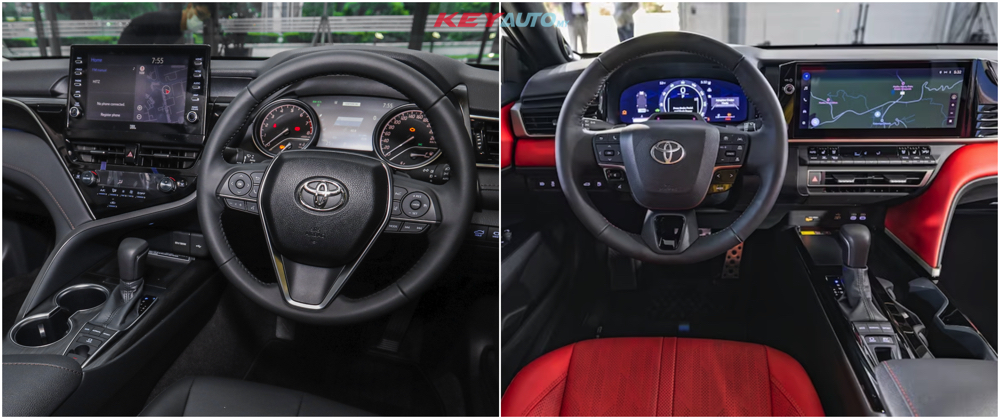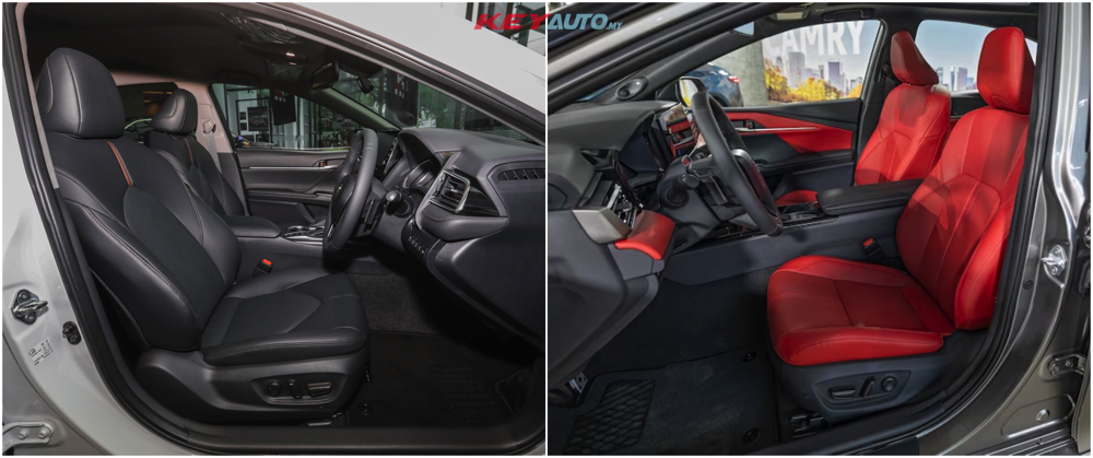 值得一提的是,第 9 代 Camry 拥有 2 种设计风格,一种是运动风格,配备蜂窝网格栅、19 寸运动轮圈、黑色车顶、黑化套件、黑红色内饰等;另一种是精致风格,采用横幅饰条格栅设计、18 寸轮圈、黑白双色内装等。