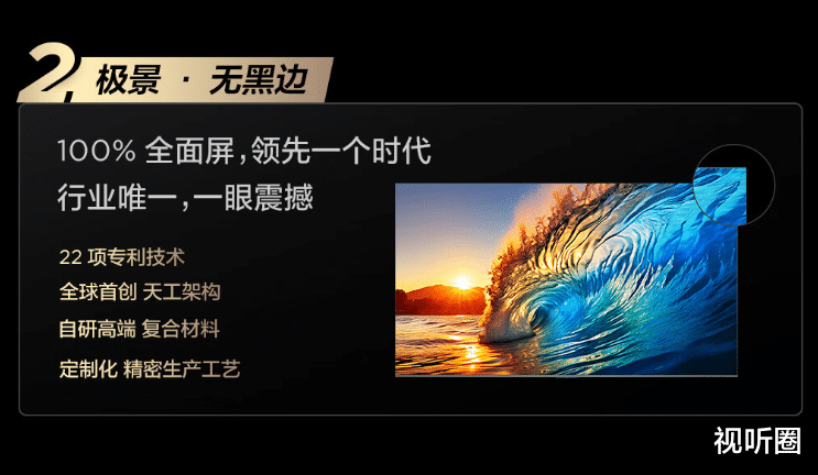 这些升级中,最直观可见的是“屏幕黑边消失术”。有业内人士指出,此前一些高屏占比电视产品,其计算的屏幕面积并非纯粹的“显示面积”,而是包含了显示屏与电视机边框之间6-10毫米宽的黑边。而蝶翼华曜屏的突破性“极景•无黑边”设计,通过22项专利技术,将屏幕黑边压缩至人眼几乎不可见的极限,并确保了从驱动到密封等影响体验的各个环节全面升级,真正带来极致的“全面屏”产品体验。