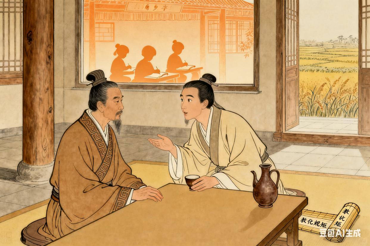 对策之后,董仲舒没留在朝廷做大官,反而请求去江都国做相。江都王刘非是武帝的哥哥,性子骄横,喜欢勇武。董仲舒到了江都,没跟他讲大道理,而是借着当地的水灾,跟他说“天道有阴阳,王道有仁暴,水灾是上天警示,当行仁政”。他还帮江都国制定了教化百姓的规矩,在城里设了乡学,让儒生去讲课。有次刘非跟他喝酒,问他“昔者齐桓公以管仲为相,九合诸侯,今吾有先生,可得比齐桓公乎?”董仲舒放下酒杯,认真地说“王者承天意以从事,不务德而务法,非所宜也”。刘非愣了愣,没再说话,后来倒真的收敛了不少。