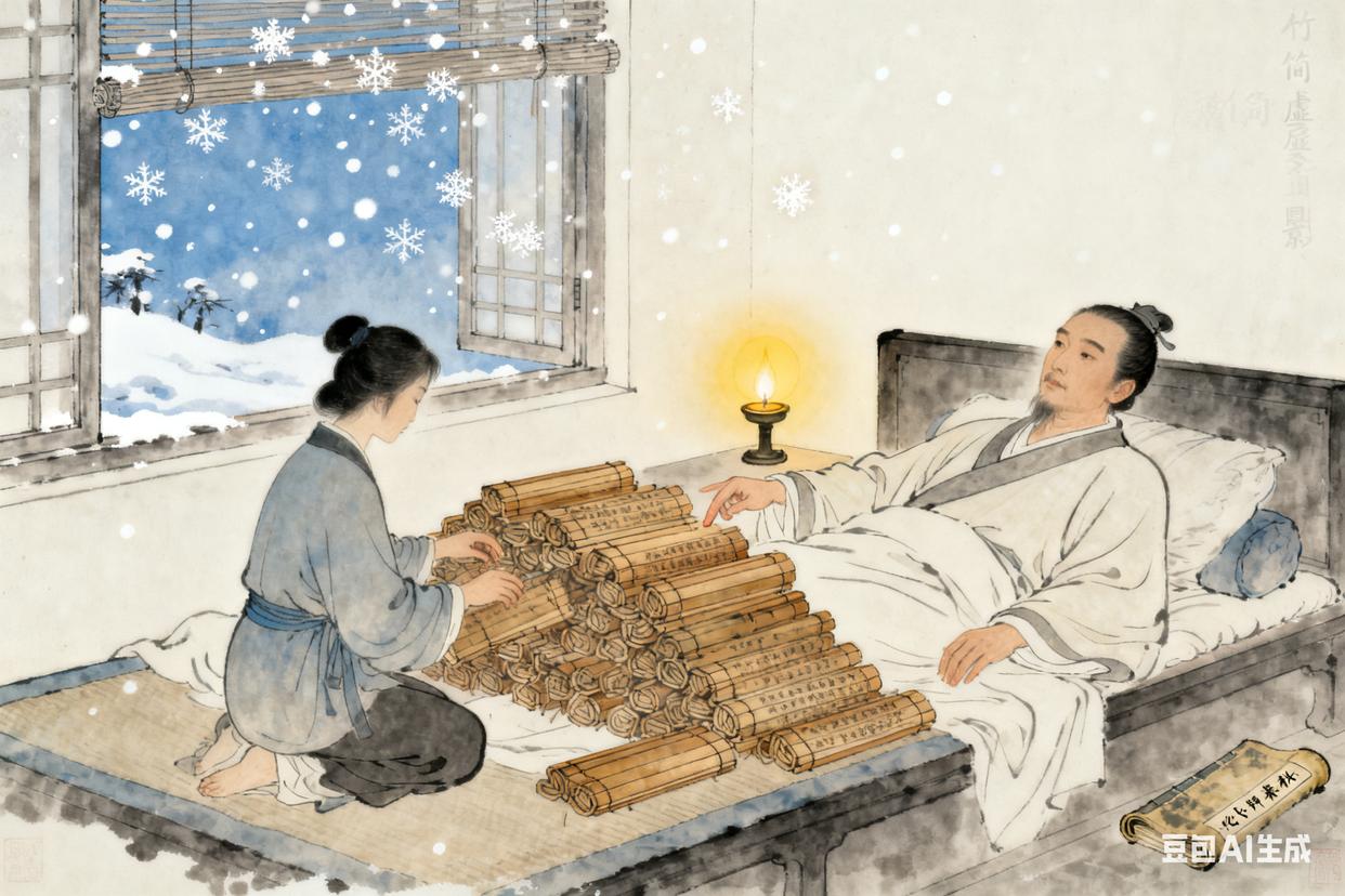 汉文帝前元元年,刚满二十岁的董仲舒把自己关在了这间书房。那时天下刚从秦末战乱里缓过来,朝廷信的是“无为而治”的黄老学说,儒生们只能在角落里琢磨典籍。他从父亲手里接过传下来的《公羊春秋》,牛皮封面已经磨得发亮,里面夹着祖父写的批注。每天天不亮就点灯看书,直到深夜,母亲让仆人隔三差五去打理园子,仆人回来总说“先生连窗都没开过”。有次弟弟来送棉衣,推开门看见满屋子的竹简堆到了屋顶,董仲舒蹲在地上,手里拿着竹简念念有词,连弟弟进来都没听见。《汉书》里说他“三年不窥园”,其实哪止三年,他守着这堆竹简,守到了头发都开始发白,指尖翻书的地方磨出了厚厚的茧子,才把《公羊春秋》里的道理,嚼碎了咽进心里。