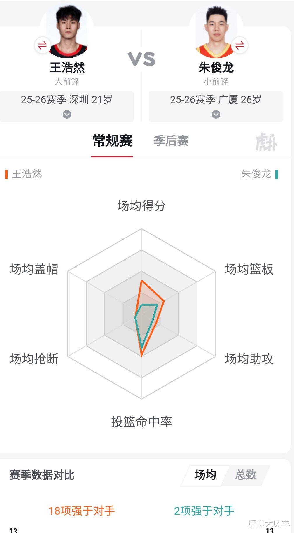 和张镇麟相比,王浩然也有16项数据强于对手,再来和朱俊龙对比,王浩然更是全面碾压。
