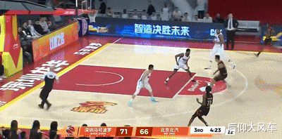 接着,王浩然还持球直面北汽内线,在周琦头上完成突破上篮。